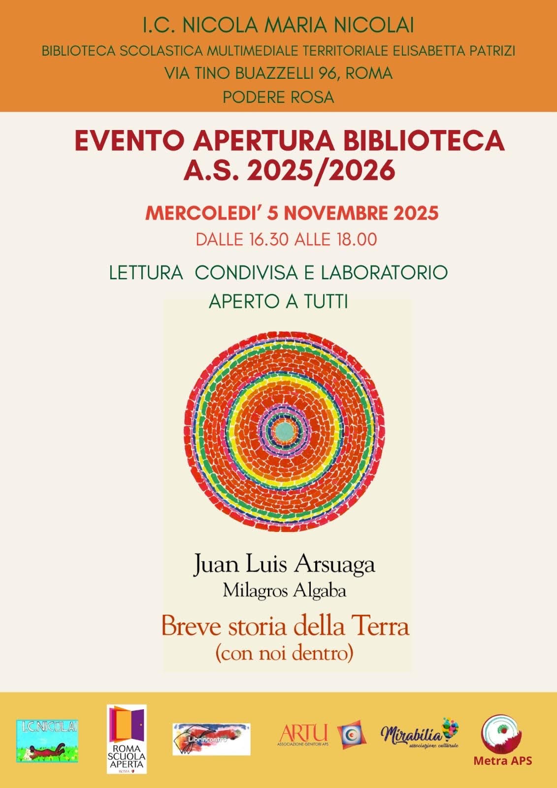 Siete invitati a partecipare all’apertura annuale della Biblioteca Scolastica Multimediale Territoriale “Elisabetta Patrizi”, con sede nel Plesso Podere Rosa, che si terrà il 5 NOVEMBRE 2025 dalle 16,30 alle 18,00.
