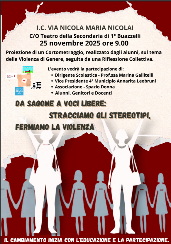 L’Istituto Comprensivo “Via N. M. Nicolai” e la Scuola Secondaria “T. Buazzelli” Vi invitano a partecipare alla Giornata Internazionale per l’Eliminazione della Violenza contro le Donne.